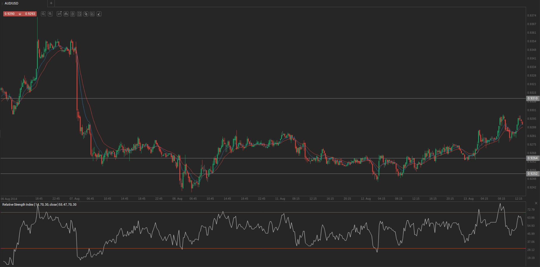 According to Binary Tribune’s daily analysis, the central pivot point for the pair is at 0.9264. In case AUD/USD manages to breach the first resistance level at 0.9281, it will probably continue up to test 0.9293. In case the second key resistance is broken, the pair will probably attempt to advance to 0.9310.