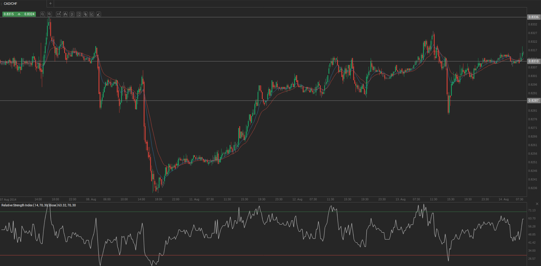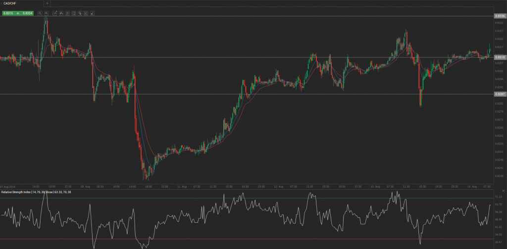 At 6:13 GMT today CAD/CHF was gaining 0.04% for the day to trade at 0.8318. The pair touched a daily high at 0.8322 at 6:01 GMT.