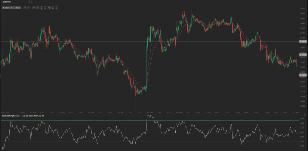 During yesterday’s trading session EUR/AUD traded within the range of 1.4356-1.4426 and closed at 1.4364, losing 0.4% for the day.