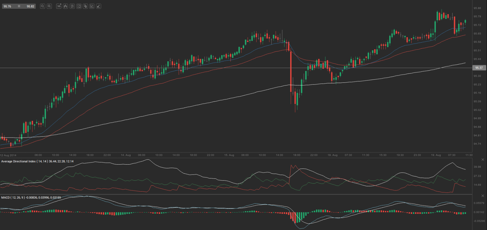 At 8:49 GMT today AUD/JPY was up 0.14% for the day to trade at 95.78. The pair broke the first key daily resistance level and touched a daily high at 95.87 at 3:15 GMT.