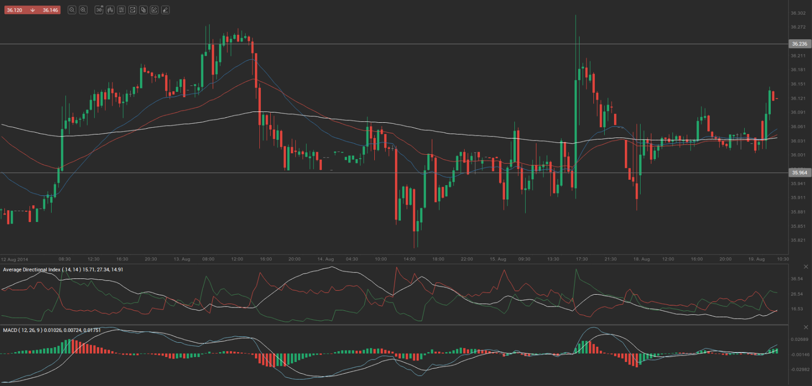 According to Binary Tribune’s daily analysis, the central pivot point for the pair is at 36.042. In case USD/RUB manages to breach the first resistance level at 36.158, it will probably continue up to test 36.236. In case the second key resistance is broken, the pair will probably attempt to advance to 36.352.