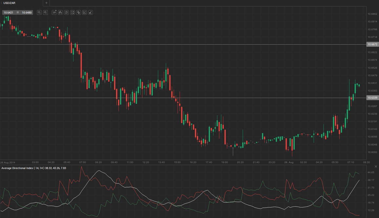 At 8:14 GMT today USD/ZAR was up 0.20% for the day to trade at 10.6468. The pair held in a daily range between 10.6032 and 10.6481, touched at 7:57 GMT.
