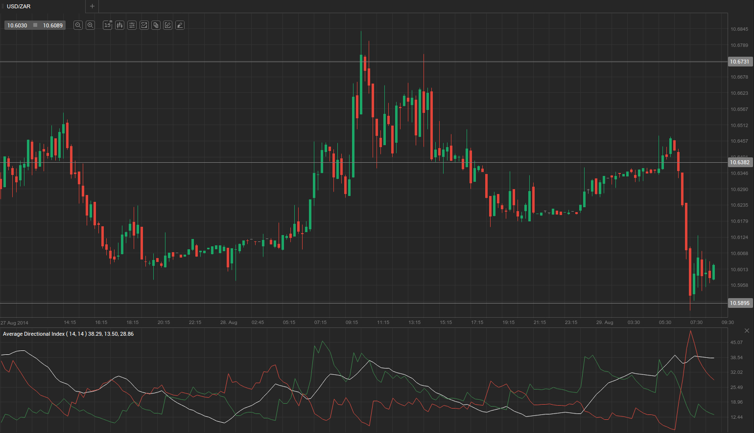 At 9:16 GMT today USD/ZAR was down 0.11% for the day to trade at 10.6130. The pair held in a daily range between 10.6501 and a two-week low of 10.5902, touched at 7:40 GMT.