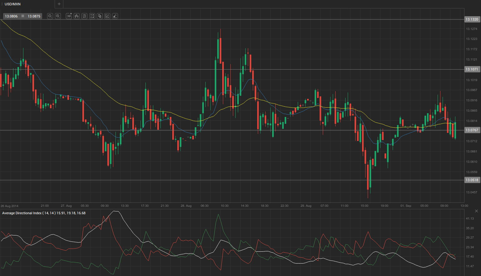 According to Binary Tribune’s daily analysis, the central pivot point for the pair is at 13.0767. In case USD/MXN manages to breach the first resistance level at 13.1071, it will probably continue up to test 13.1320. In case the second key resistance is broken, the pair will probably attempt to advance to 13.1624.