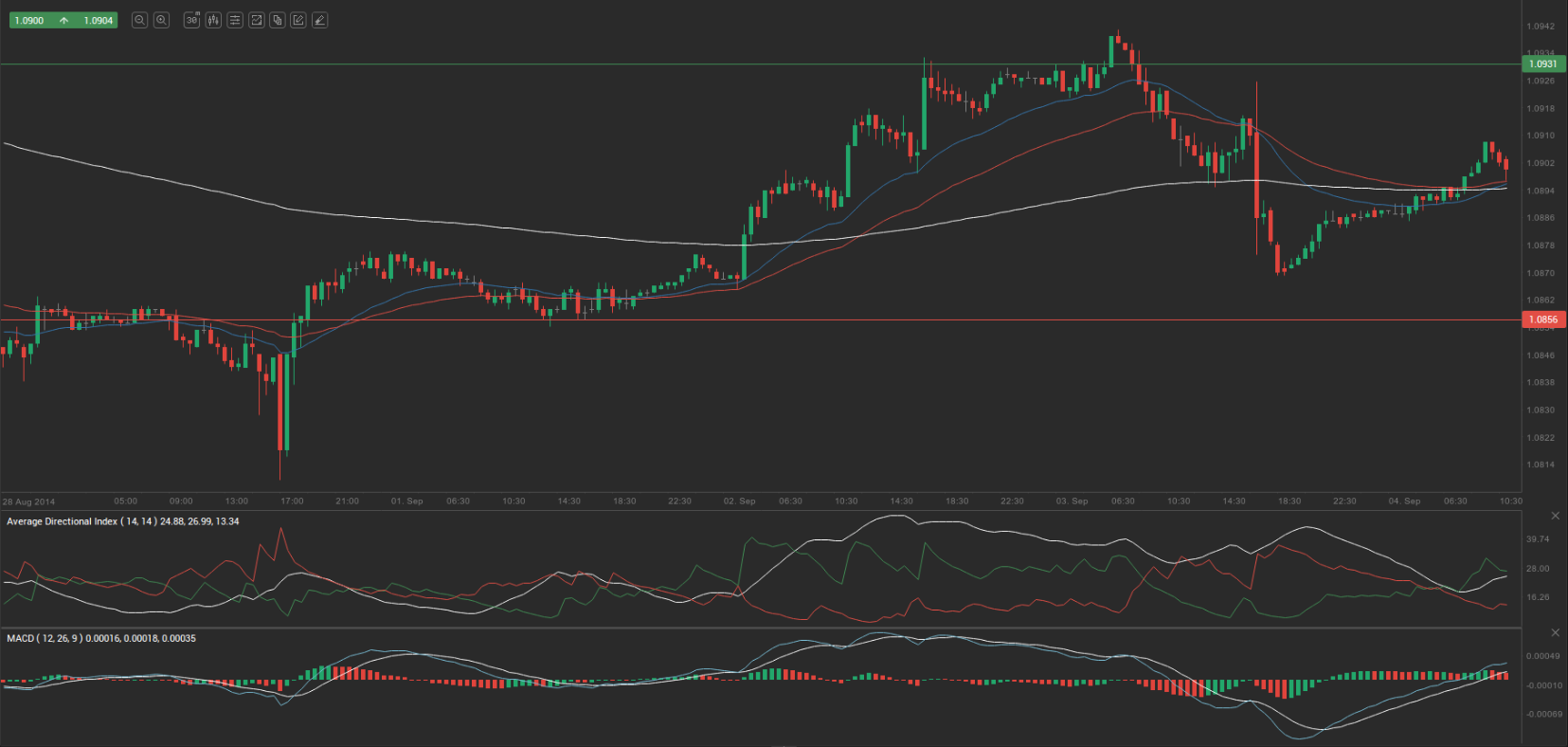 At 8:12 GMT today USD/CAD was up 0.13% for the day to trade at 1.0902. The pair touched a daily high at 1.0910 at 7:15 GMT.