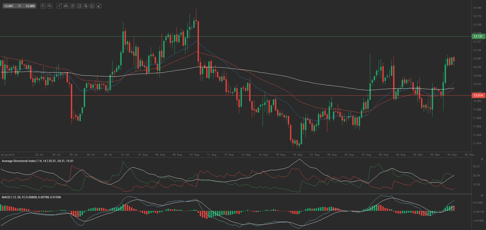 Yesterday’s trade saw CAD/MXN within the range of 11.9825-12.0990. The pair closed at 12.0891, gaining 0.49% on a daily basis.