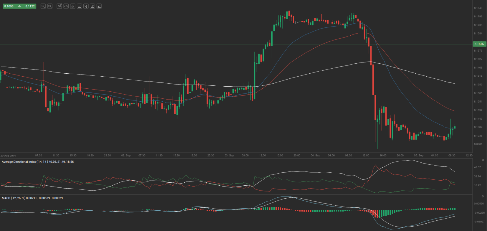 According to Binary Tribune’s daily analysis, the central pivot point for the pair is at 8.1290. In case EUR/NOK manages to breach the first resistance level at 8.1616, it will probably continue up to test 8.2159. In case the second key resistance is broken, the pair will probably attempt to advance to 8.2485.