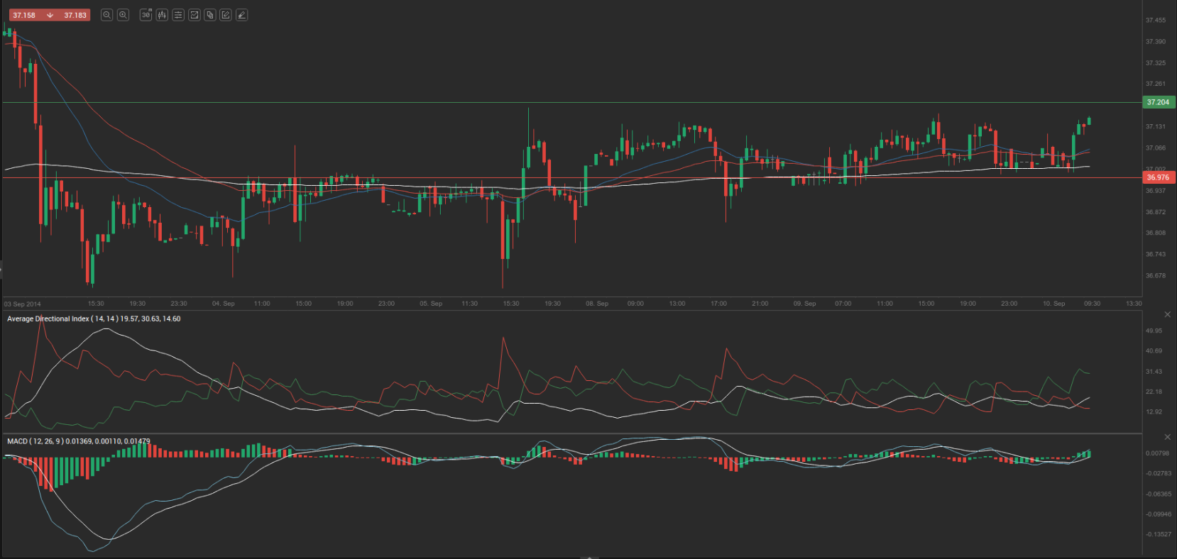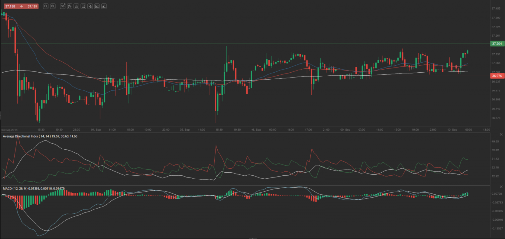 According to Binary Tribune’s daily analysis, the central pivot point for the pair is at 37.082. In case USD/RUB manages to breach the first resistance level at 37.204, it will probably continue up to test 37.310. In case the second key resistance is broken, the pair will probably attempt to advance to 37.432.
