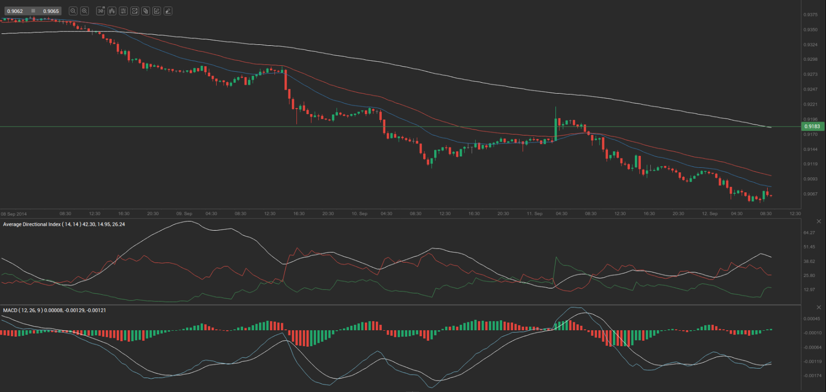 At 7:19 GMT today AUD/USD was down 0.37% for the day to trade at 0.9066. The pair broke all three key weekly supports and touched a daily low at 0.9053 at 5:40 GMT.