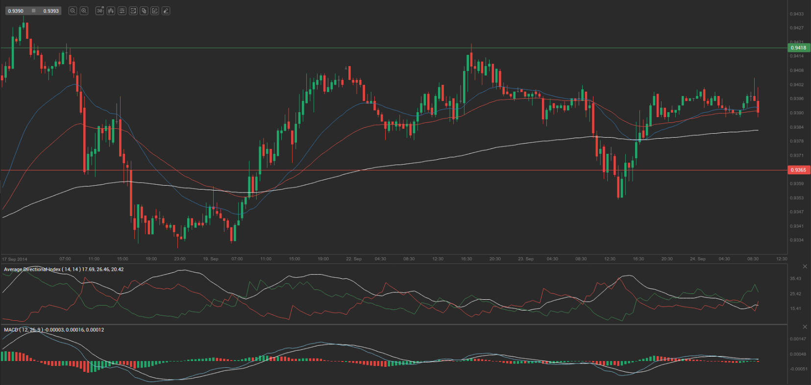 Yesterday’s trade saw USD/CHF within the range of 0.9351-0.9404. The pair closed at 0.9399, gaining 0.01% on a daily basis.