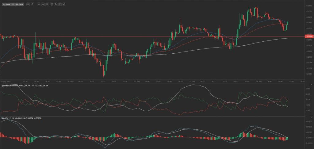 According to Binary Tribune’s daily analysis, the central pivot point for the pair is at 13.2895. In case USD/MXN manages to breach the first resistance level at 13.3490, it will probably continue up to test 13.3805. In case the second key resistance is broken, the pair will probably attempt to advance to 13.4400.