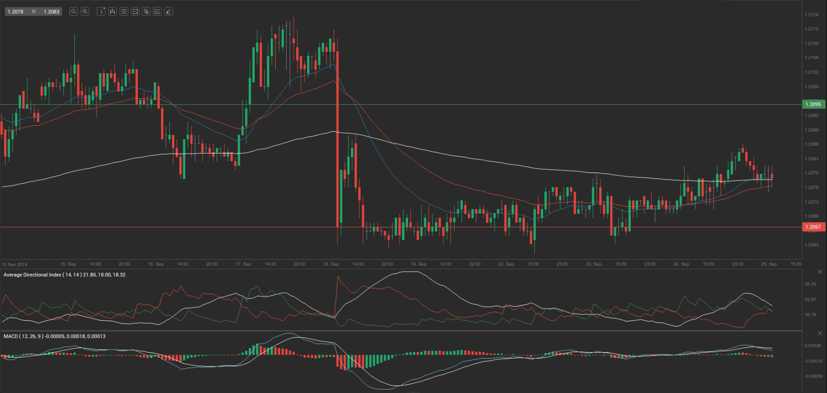 According to Binary Tribune’s daily analysis, the central pivot point for the pair is at 1.2078. In case EUR/CHF manages to breach the first resistance level at 1.2095, it will probably continue up to test 1.2106. In case the second key resistance is broken, the pair will probably attempt to advance to 1.2123.