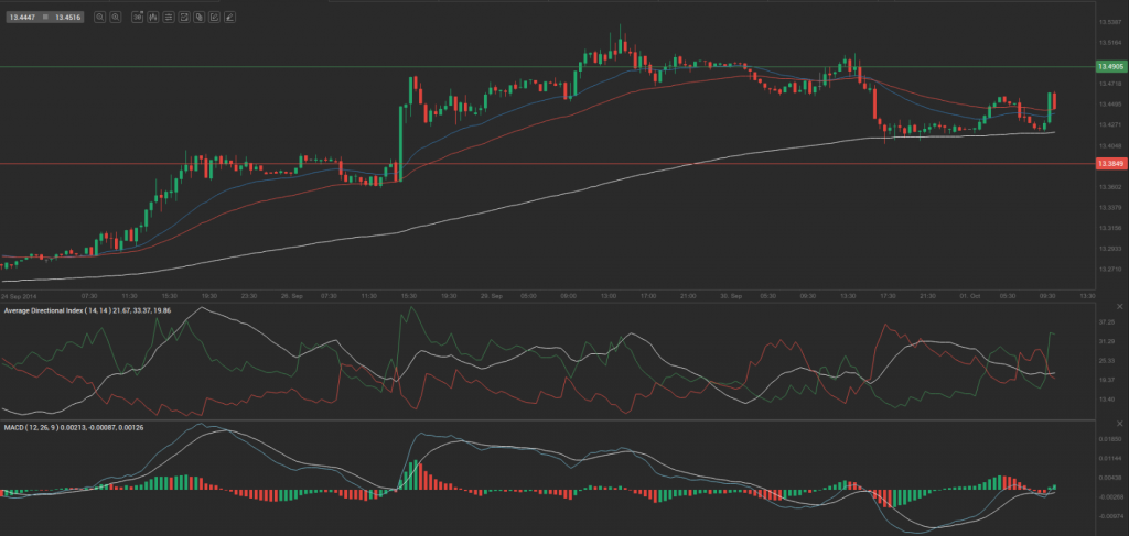 According to Binary Tribune’s daily analysis, the central pivot point for the pair is at 13.4477. In case USD/MXN manages to breach the first resistance level at 13.4905, it will probably continue up to test 13.5532. In case the second key resistance is broken, the pair will probably attempt to advance to 13.5960.