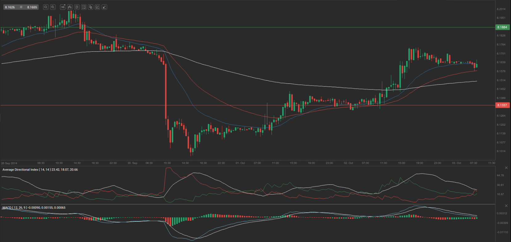 According to Binary Tribune’s daily analysis, the central pivot point for the pair is at 8.1580. In case EUR/NOK manages to breach the first resistance level at 8.1882, it will probably continue up to test 8.2125. In case the second key resistance is broken, the pair will probably attempt to advance to 8.2427.