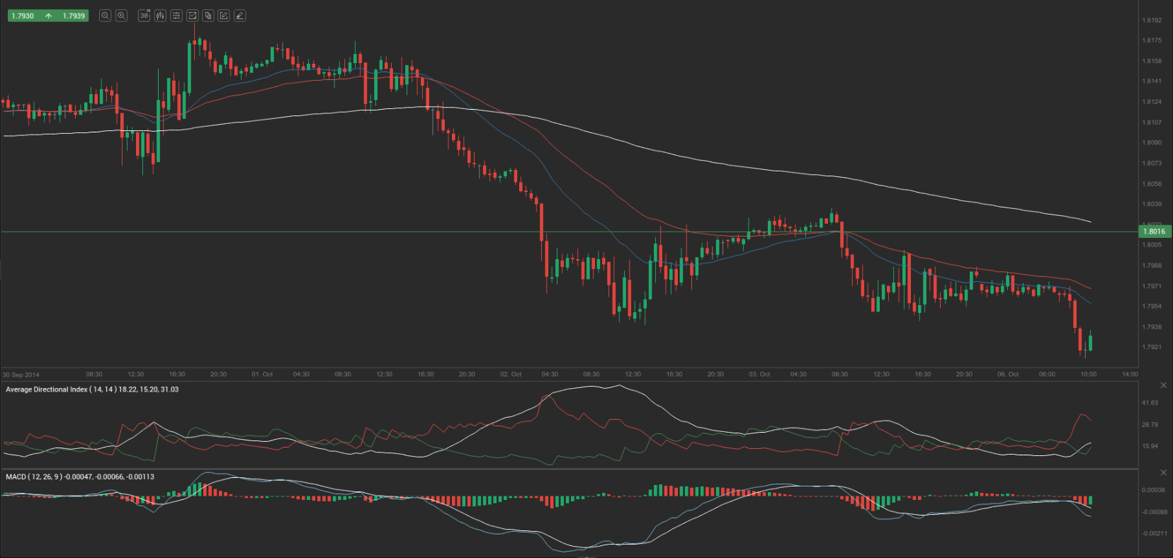 Friday’s trade saw GBP/CAD within the range of 1.7937-1.8042. The pair closed at 1.7950, losing 0.34% on a daily basis.