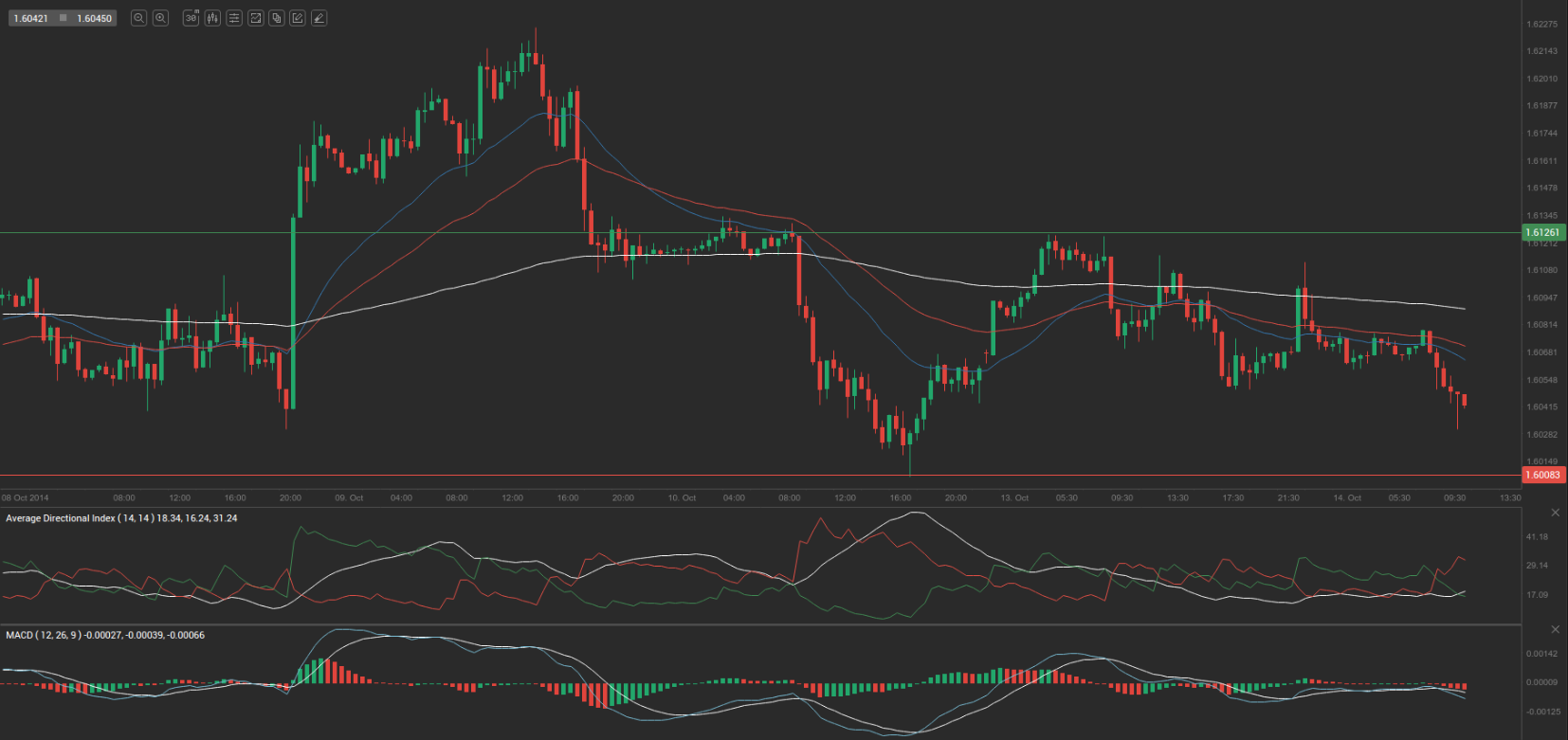 At 7:58 GMT today GBP/USD was down 0.23% for the day to trade at 1.6046. The pair broke the first key daily support and touched a daily low at 1.6033 at 7:42 GMT.