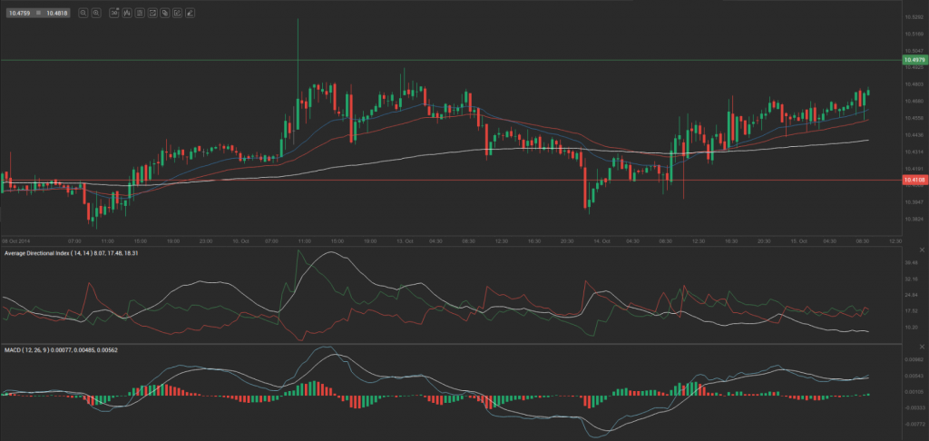 Yesterday’s trade saw GBP/NOK within the range of 10.3910-10.4781. The pair closed at 10.4643, gaining 0.51% on a daily basis.