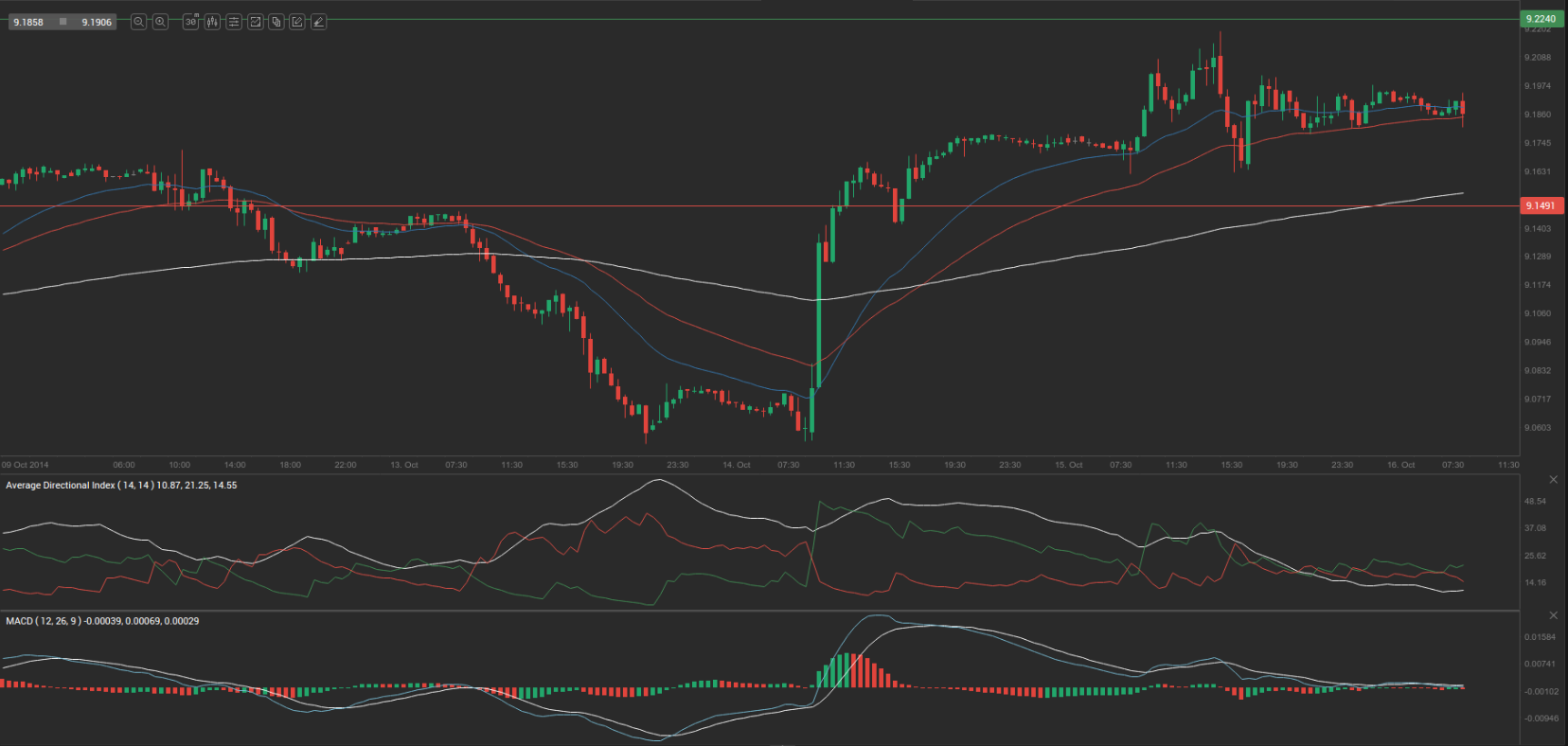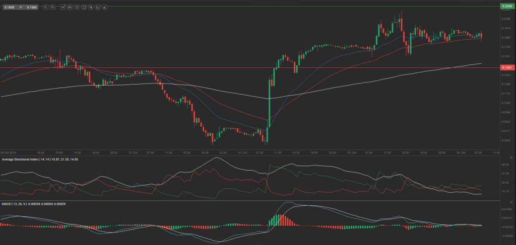According to Binary Tribune’s daily analysis, the central pivot point for the pair is at 9.1878. In case EUR/SEK manages to breach the first resistance level at 9.2240, it will probably continue up to test 9.2626. In case the second key resistance is broken, the pair will probably attempt to advance to 9.2988.