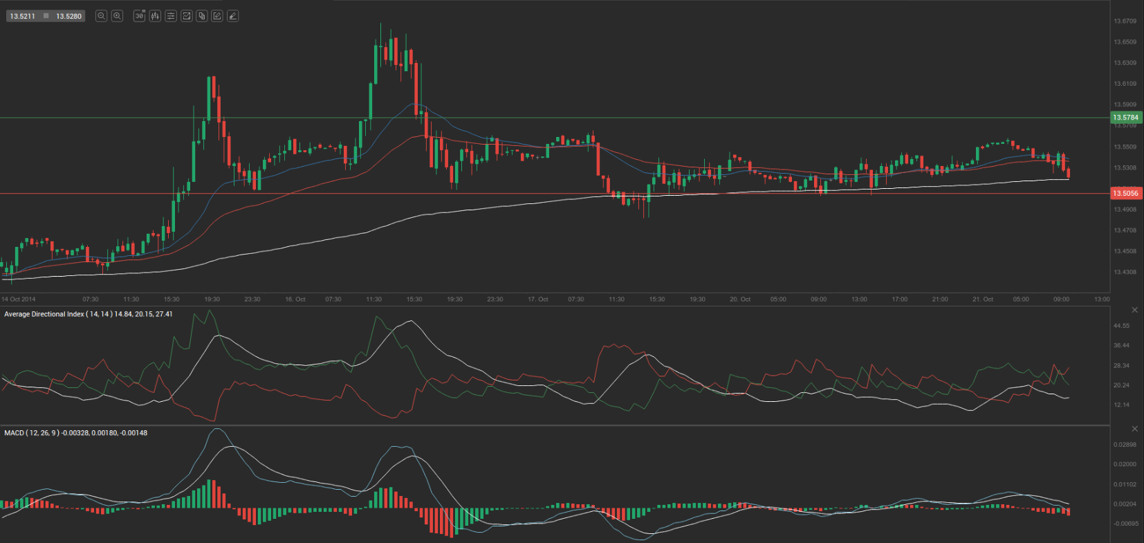 According to Binary Tribune’s daily analysis, the central pivot point for the pair is at 13.5280. In case USD/MXN manages to breach the first resistance level at 13.5560, it will probably continue up to test 13.5784. In case the second key resistance is broken, the pair will probably attempt to advance to 13.6065.