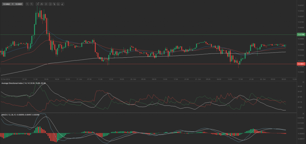 According to Binary Tribune’s daily analysis, the central pivot point for the pair is at 13.5254. In case USD/MXN manages to breach the first resistance level at 13.5788, it will probably continue up to test 13.6181. In case the second key resistance is broken, the pair will probably attempt to advance to 13.6715.