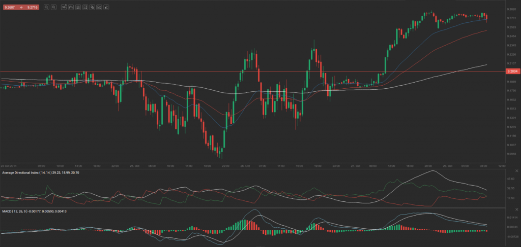 According to Binary Tribune’s daily analysis, the central pivot point for the pair is at 9.2423. In case EUR/SEK manages to breach the first resistance level at 9.3095, it will probably continue up to test 9.3513. In case the second key resistance is broken, the pair will probably attempt to advance to 9.4185.