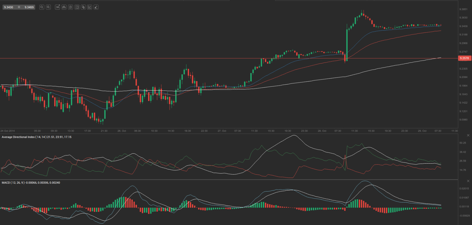 According to Binary Tribune’s daily analysis, the central pivot point for the pair is at 9.3252. In case EUR/SEK manages to breach the first resistance level at 9.4080, it will probably continue up to test 9.4754. In case the second key resistance is broken, the pair will probably attempt to advance to 9.5582.