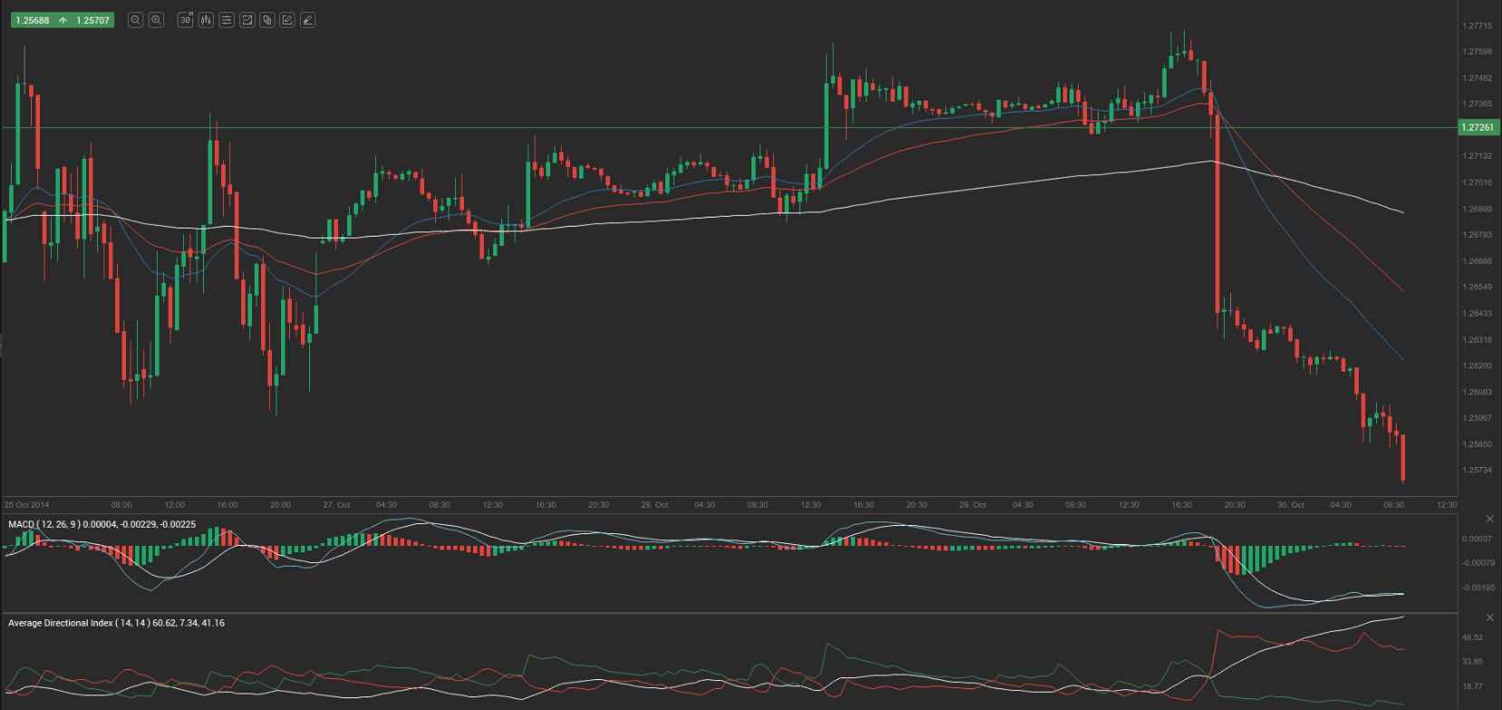 Yesterday’s trade saw EUR/USD within the range of 1.2629-1.2772. The pair closed at 1.2632, losing 0.80% on a daily basis.