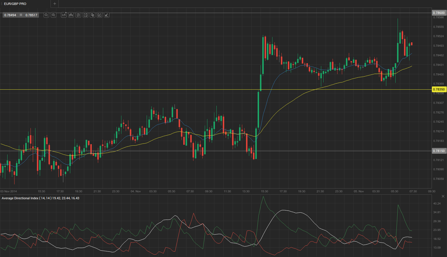 At 7:46 GMT today EUR/GBP was up 0.14% for the day to trade at 0.7851. The cross held in a daily range of 0.7837-0.7859.