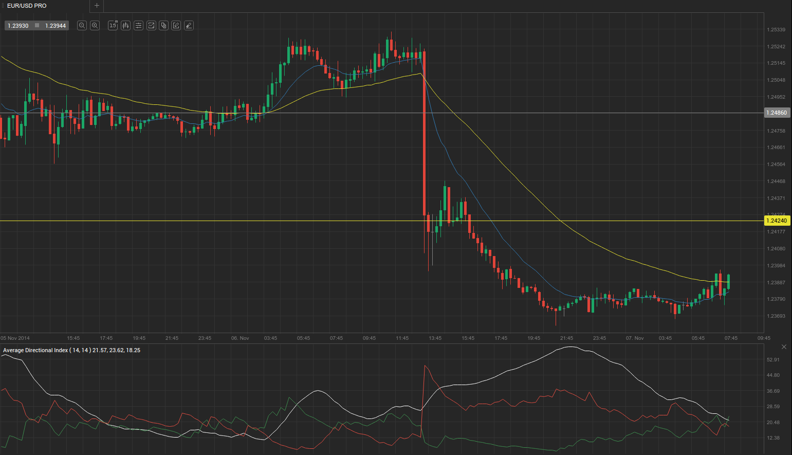 Yesterday’s trade saw EUR/USD within the range of 1.2535-1.2363. The pair closed at 1.2375, losing 0.89% on a daily basis.