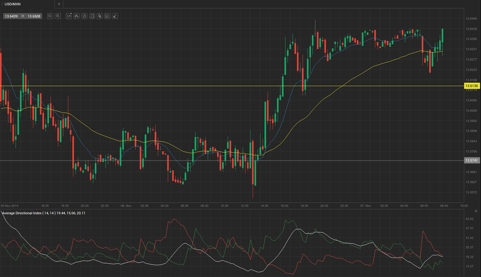 At 9:14 GMT today USD/MXN was up 0.06% for the day to trade at 13.6456. The pair held in a daily range of 13.6257-13.6481.