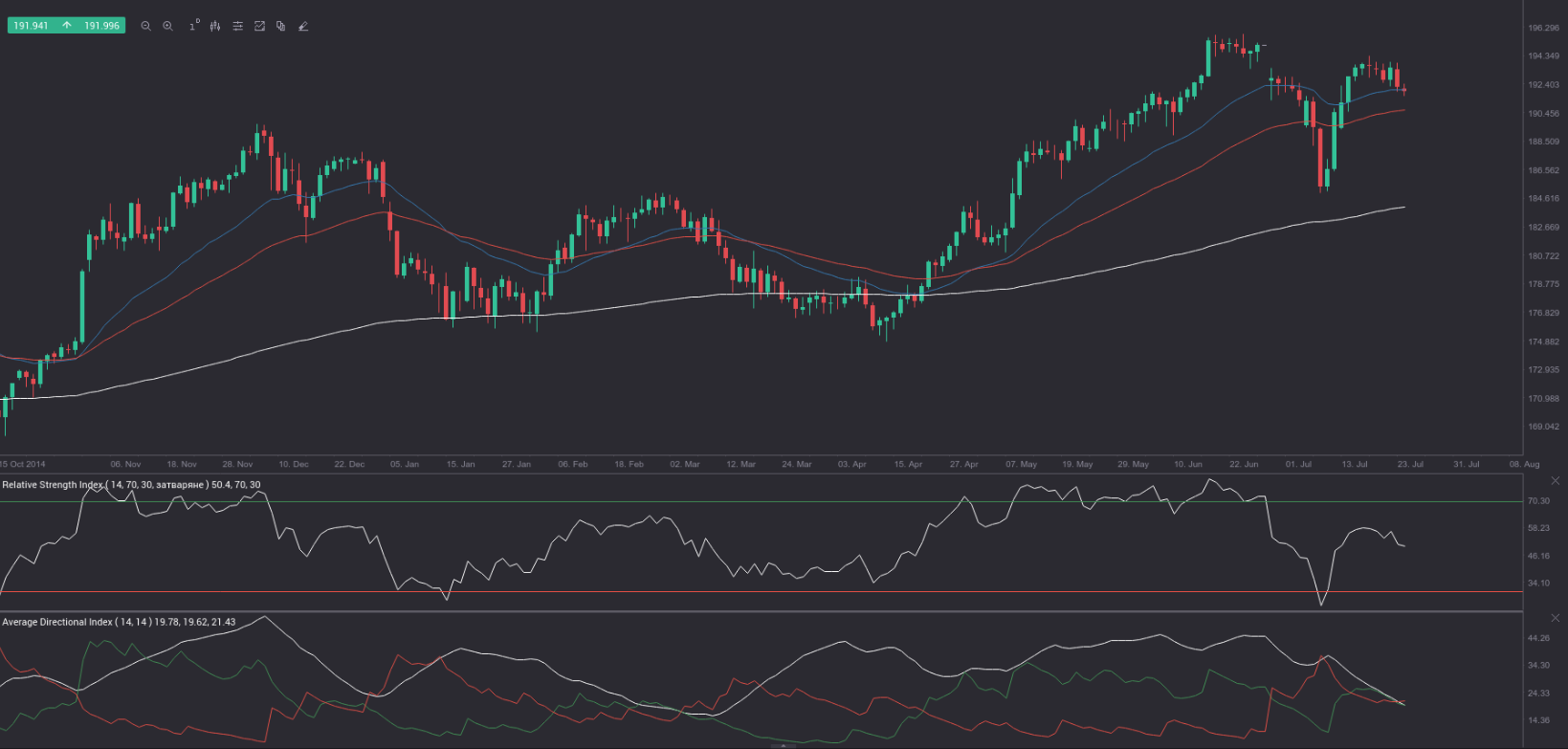 In weekly terms, the central pivot point is at 192.31. The three key resistance levels are as follows: R1 – 195.74, R2 – 197.80, R3 – 201.23. The three key support levels are: S1 – 190.25, S2 – 186.82, S3 – 184.76.