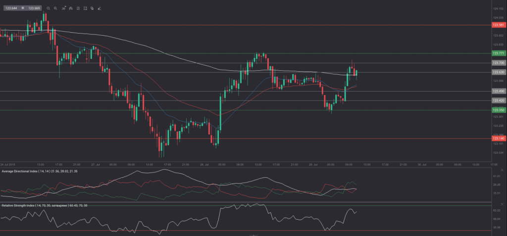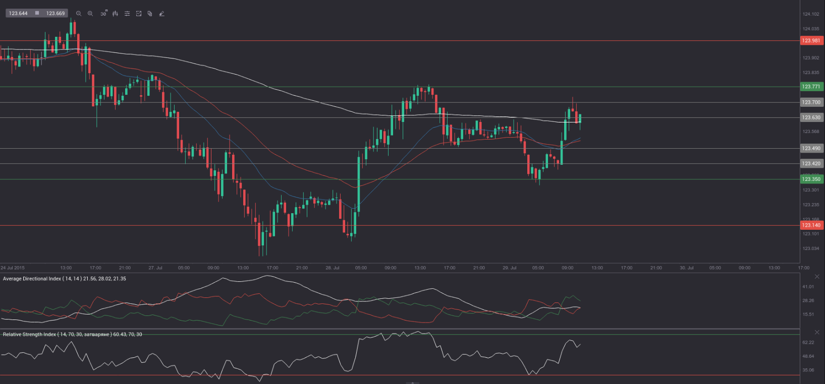 At 9:12 GMT today USD/JPY was up 0.03% for the day to trade at 123.60. The pair touched a daily high at 123.74 at 7:45 GMT, while being very close to the range resistance level (R3).