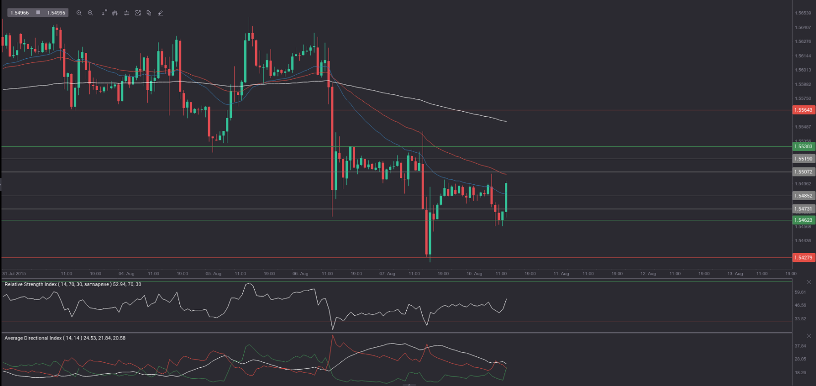 At 10:00 GMT today GBP/USD was down 0.17% for the day to trade at 1.5461. The pair tested the range support level (S3), as it touched a daily low at 1.5458 at 8:45 GMT.