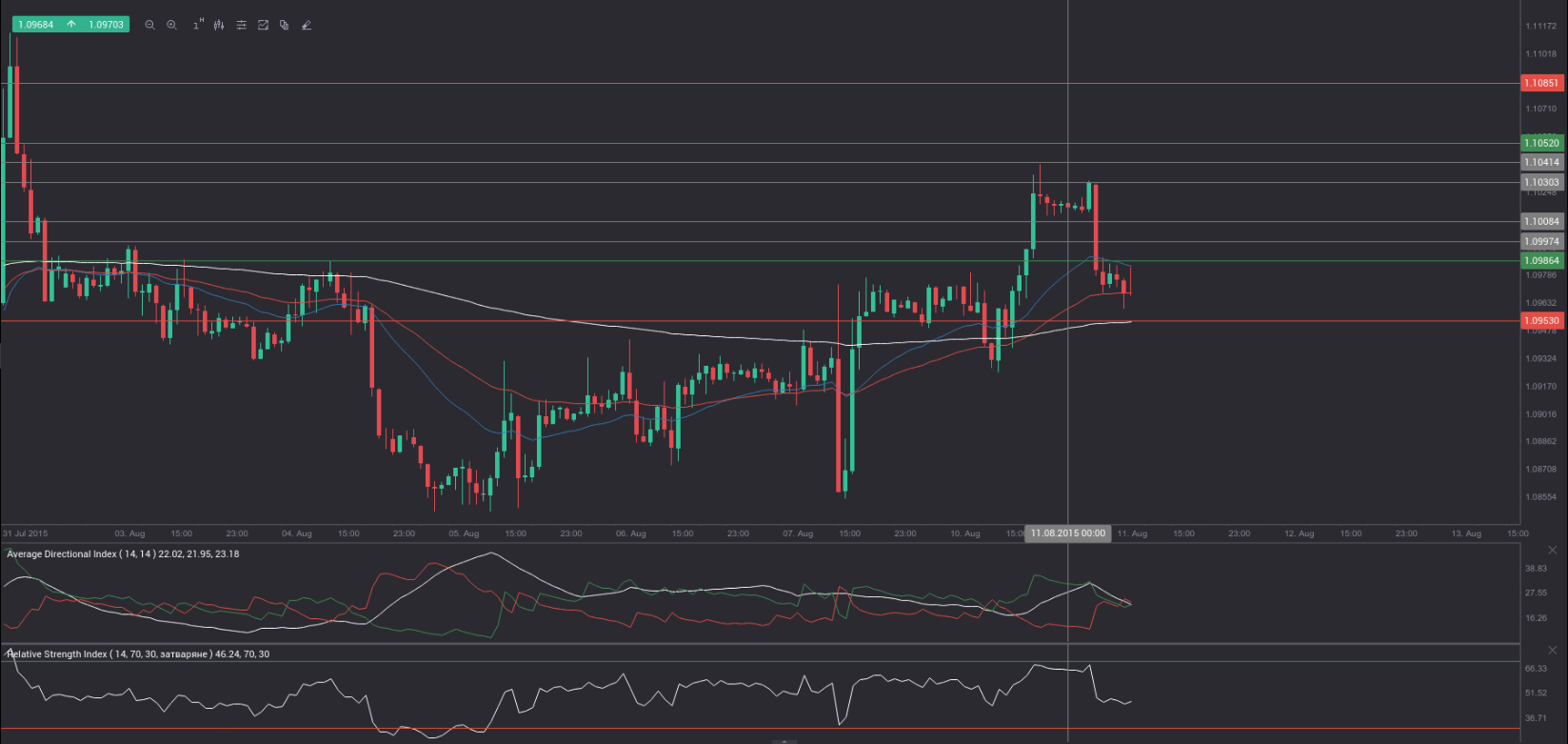 At 6:41 GMT today EUR/USD was down 0.46% for the day to trade at 1.0968. The pair touched a daily low at 1.0961 at 5:55 GMT in an attempt to test the lower range breakout level (S4).