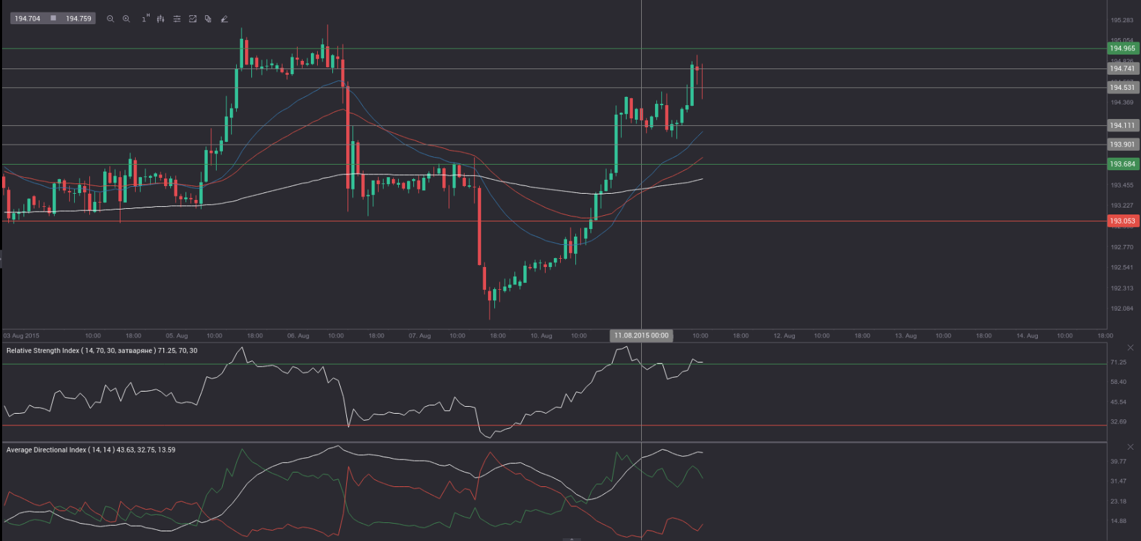 At 9:20 GMT today GBP/JPY was up 0.15% for the day to trade at 194.62. The pair touched a daily high at 194.92 at 8:00 GMT, testing the range resistance level (R3). It has been the highest level since August 6th, when a daily high of 195.28 was reached.
