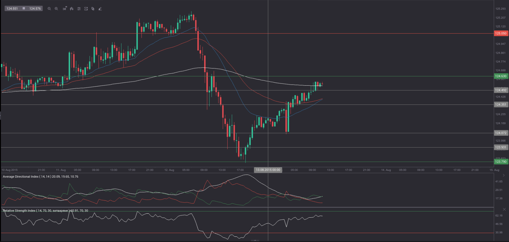 R3 (range resistance – green on the 30-minute chart) – 124.63