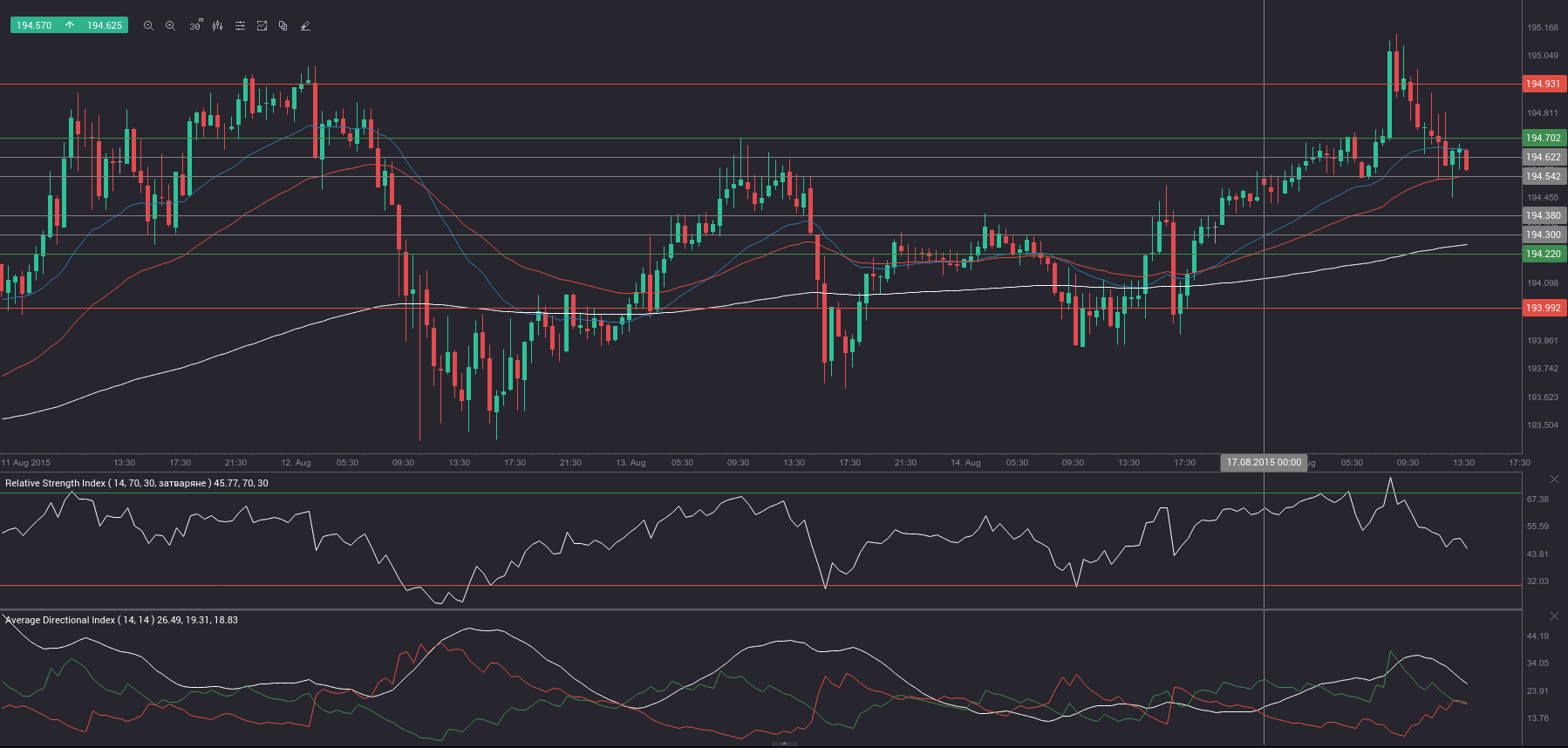 S3 (range support – green on the 30-minute chart) – 194.22