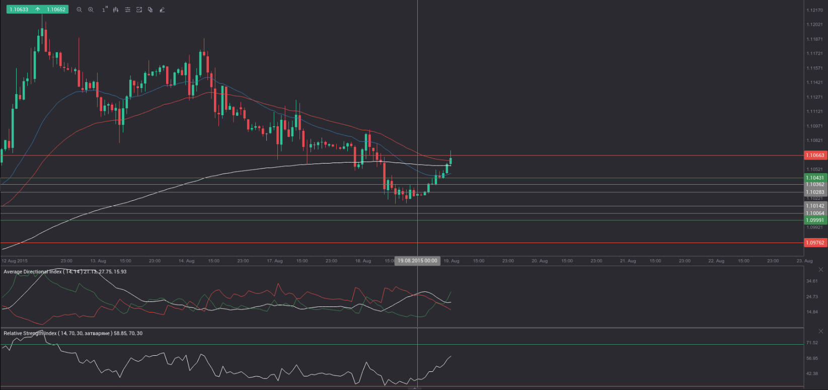R3 (range resistance – green on the 1-hour chart) – 1.1043
