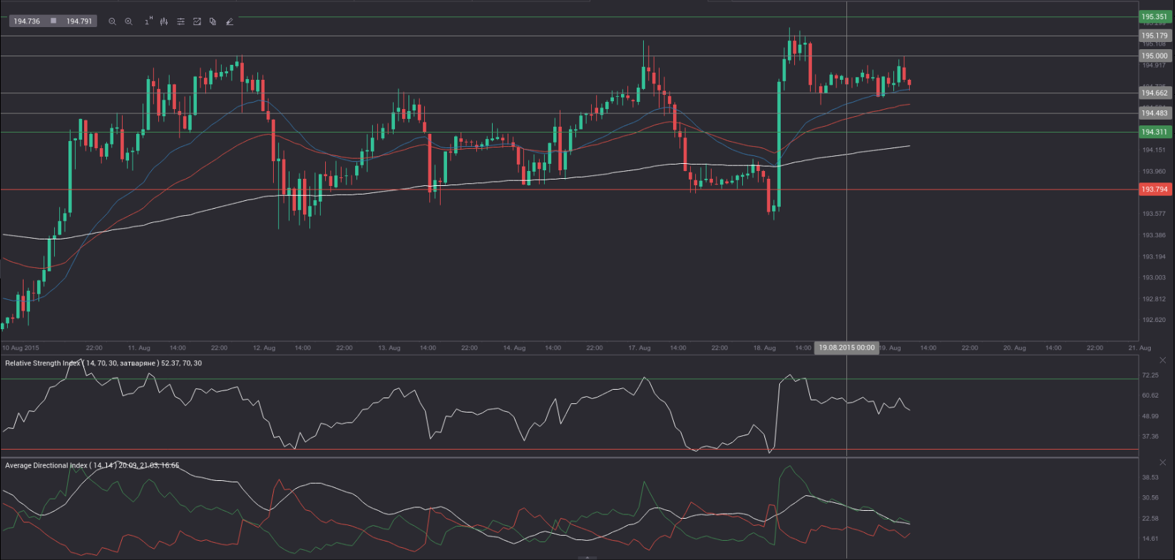 R3 (range resistance – green on the 1-hour chart) – 195.35