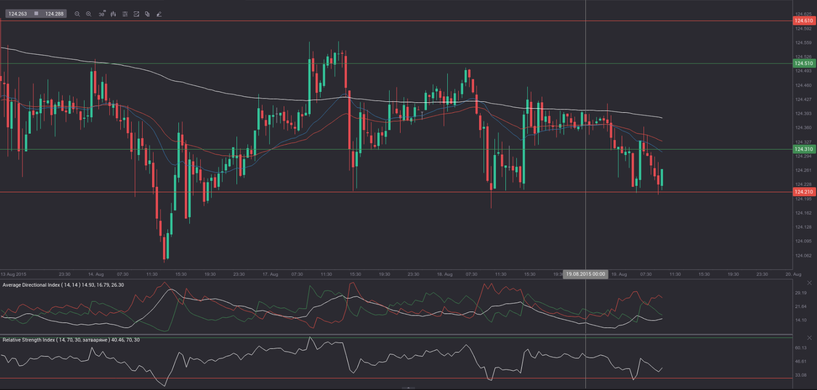 S3 (range support – green on the 30-minute chart) – 124.31