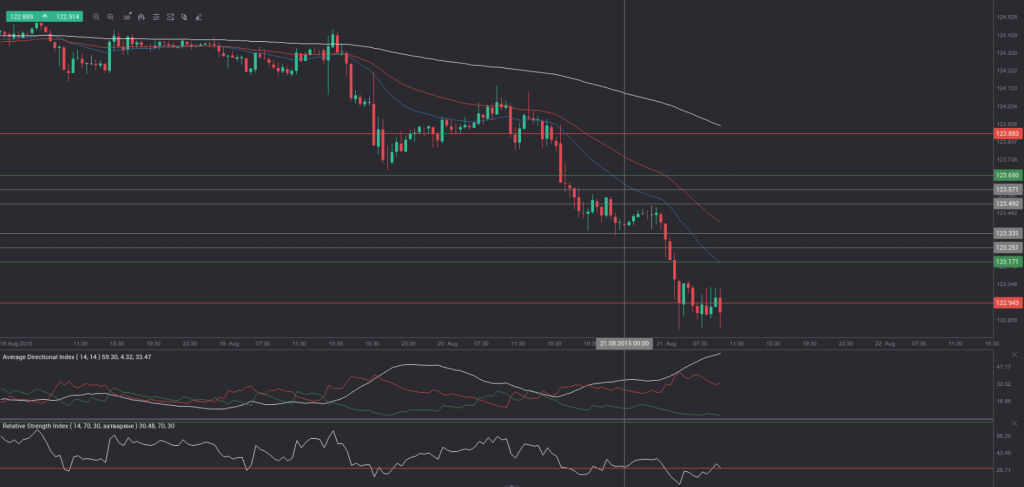 At 7:41 GMT today USD/JPY was down 0.44% for the day to trade at 122.88. The pair overcame the lower range breakout level (S4), as it touched a daily low at 122.81 at 3:05 GMT. It has been the lowest level since July 13th, when a daily low of 122.00 was reached. Support may be received within the 122.50-122.75 area.