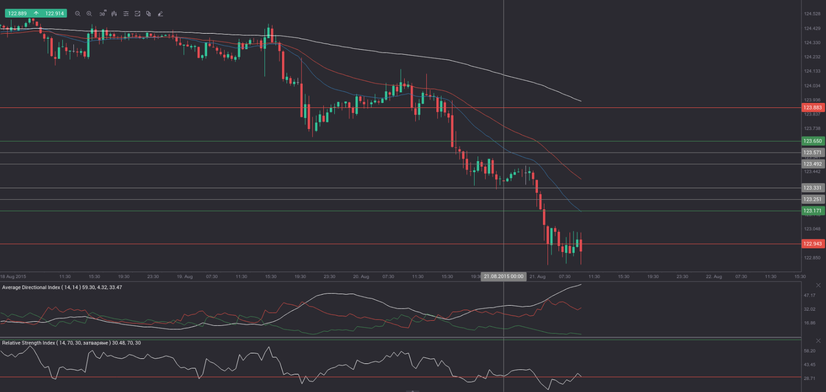 Yesterday’s trade saw USD/JPY within the range of 123.31-124.17. The pair closed at 123.41, down 0.32% on a daily basis and extending losses from Wednesday. The daily low has also been the lowest level since July 29th, when the cross registered a low of 123.30.