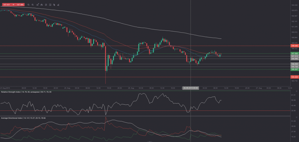 R3 (range resistance – green on the 30-minute chart) – 187.58