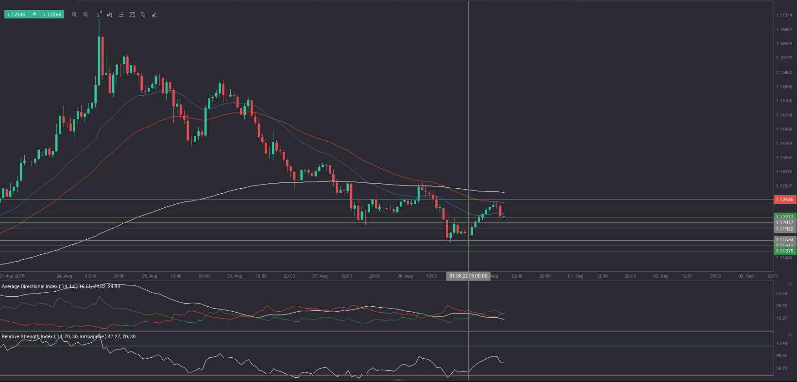 R3 (range resistance – green on the 1-hour chart) – 1.1221