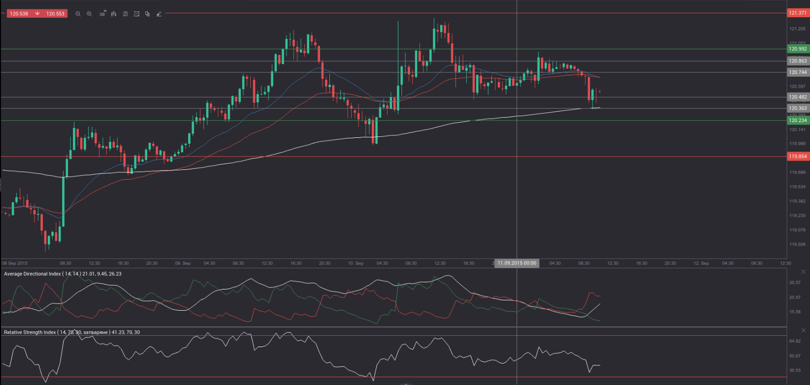 Yesterday’s trade saw USD/JPY within the range of 119.95-121.34. The pair closed at 120.61, up 0.08% on a daily basis, or the most modest daily gain since August 18th, when it rose a mere 0.02%. Thursday has also been a fourth consecutive trading day of gains. The daily high has been the highest level since August 31st, when the cross registered a high of 121.75.