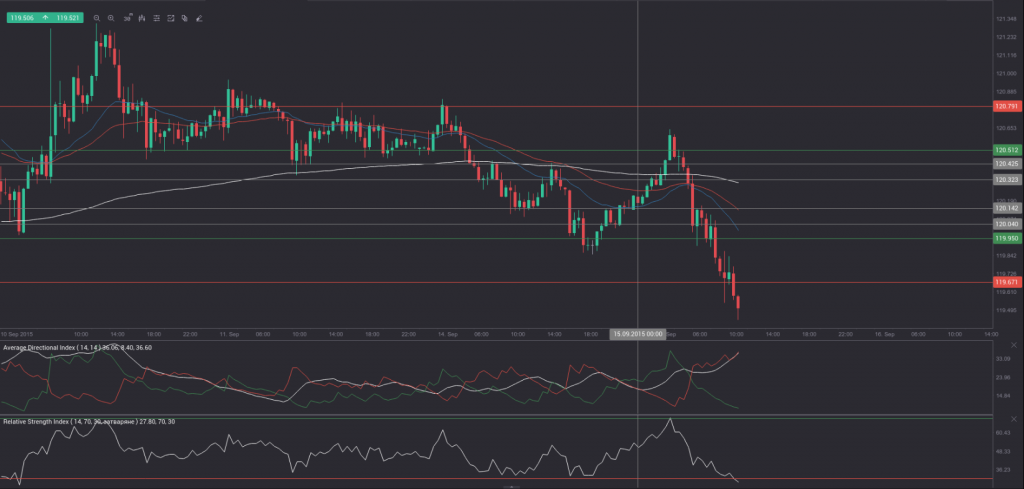 Yesterday’s trade saw USD/JPY within the range of 119.83-120.84. The pair closed at 120.23, slipping 0.48% on a daily basis and marking the second consecutive trading day of decline. The daily low has been the lowest level since September 9th, when the cross registered a low of 119.78.
