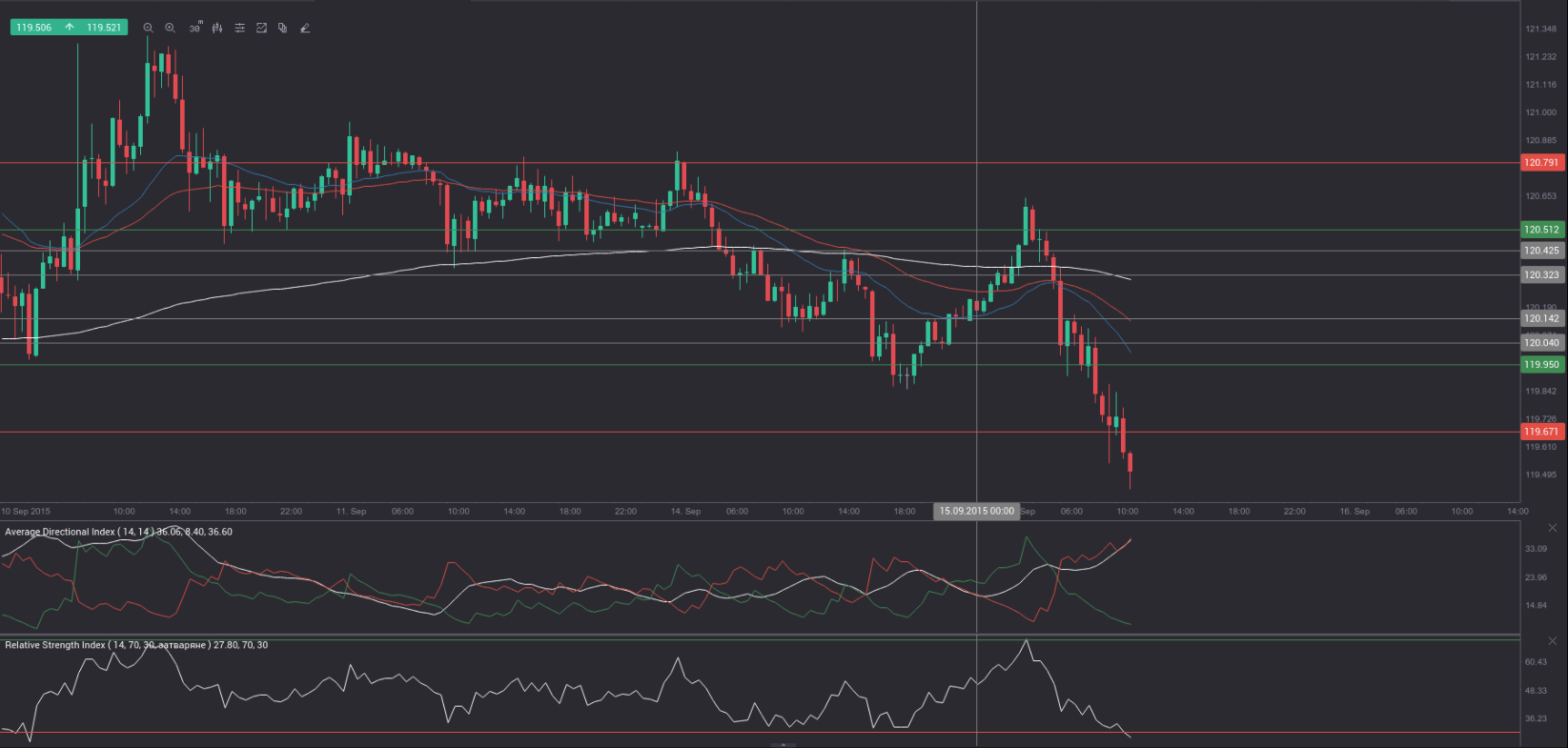 At 8:02 GMT today USD/JPY was losing 0.59% for the day to trade at 119.53. The pair overcame the lower range breakout level (S4), as it touched a daily low at 119.50 at 8:01 GMT. It has been the lowest level since September 8th, when a daily low of 118.83 was reached.