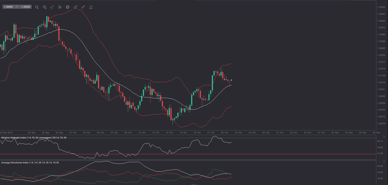 The 4-hour chart suggests that further upside may be on the horizon. The pair has returned for a test of the middle Bollinger line and seemed to have found support there. If it continues to move between the middle and the upper band, it is reasonable to expect a test of the upper band. In addition, the RSI has distanced from its overbought level and still remains above 50.00, while the +DI (green) is still above the -DI (red) and the ADX (white) is above 25.00.