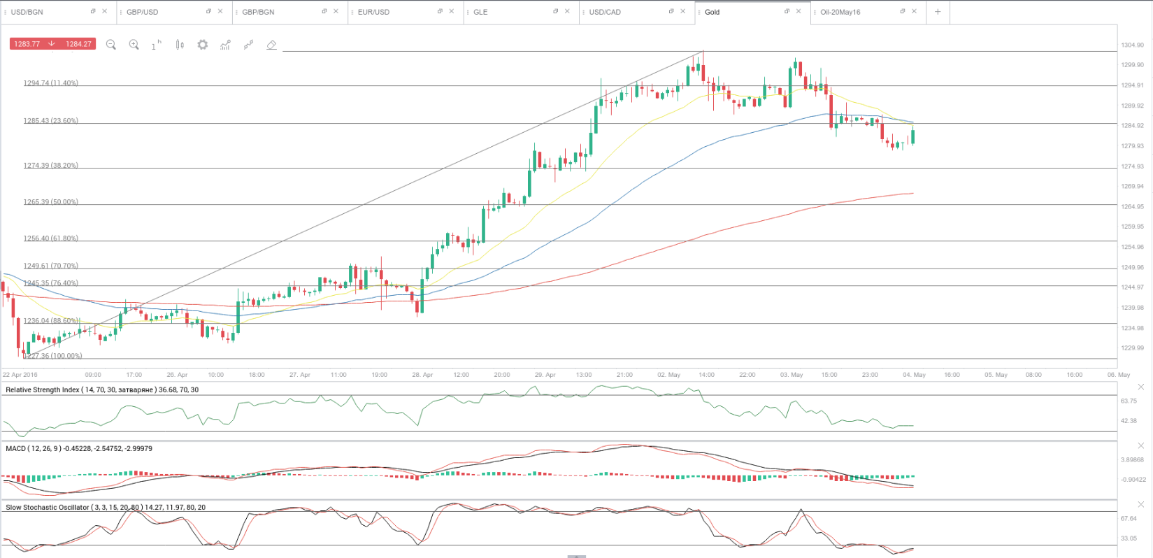On Tuesday gold for delivery in June traded within the range of $1,284.50-$1,301.50. Futures closed at $1,288.70, edging down 0.46% from Monday’s close. It has been the 30th drop in the past 64 trading days. The daily high has been a lower-high test of the high from May 2nd, while the latter is also a price level unseen since August 15th 2014. The precious metal has retreated 0.27% so far during the current month, following four consecutive months of advance. In April it added 4.46% to its value.