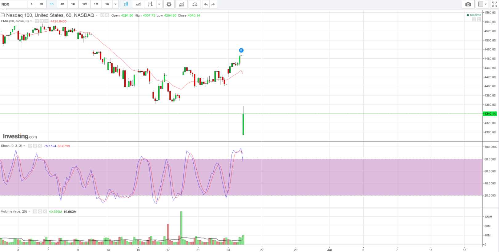 The technological Nasdaq 100 benchmark dropped a bit over 150 points to 4,294.80 at the start of the session.